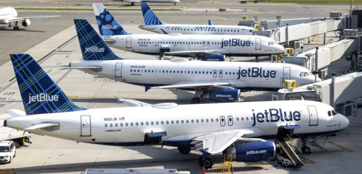 JetBlue Airbus A320 planes at LaGuardia Airport in New York City.Nicolas Economou / NurPhoto via Getty Images file